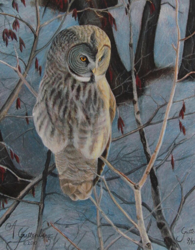 With his parents’ encouragement and a steady supply of art supplies, Andrew stayed focused on birds and how to portray their beauty through art. After high school, Andrew entered Montana State University with the intent of becoming an art teacher, but after having the opportunity to explore different mediums and techniques, he ended up getting his BFA degree in print making.
