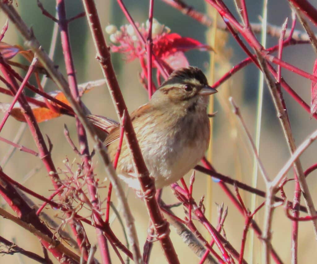 On October 21st, while walking the Sourdough Nature Trail Robin Wolcott heard a different chip note coming from the dogwoods along a ditch. Robin confirmed the call of a Swamp Sparrow with an excellent audio recording and later photographs. In the woods east of Glen Lake, Cathleen Stamm saw a Black-headed Grosbeak on October 19th. This is a full month later than the last Black-headed Grosbeak is typically seen here. And finally, perhaps a harbinger of things to come, George and Valerie Nixon had this area’s first Common Redpoll coming to their feeder on October 22nd.
