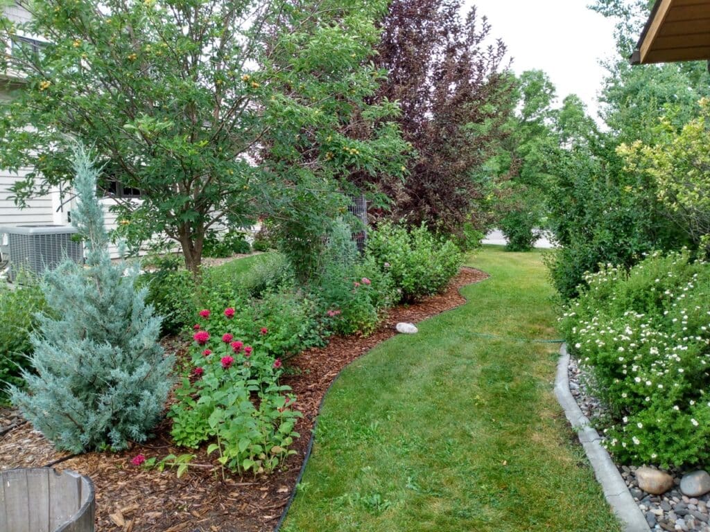 Sacajawea Audubon Society started a program called Bird-friendly Landscaping and produced a brochure in 2018 about how to create a bird-friendly landscape that would attract birds and pollinators and be beautiful as well. Harris used the four-page brochure for ideas and inspiration as she planned her yard. The brochure gives plans for a small garden, a large island bed, and a biohedge to attract birds and provide privacy. It also gives pointers for attracting birds to your yard and provides lists of perennials, deciduous trees, evergreens, shrubs, and vines native to our area and/or attractive to the birds.