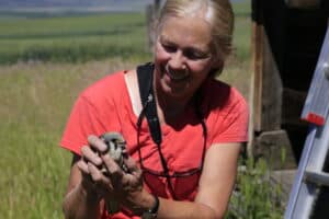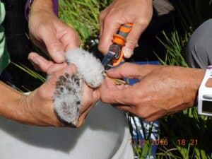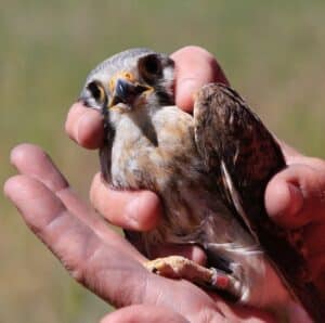By installing and monitoring kestrel nest boxes in our area, Sacajawea Audubon hopes to help in the conservation of kestrels in two ways: By providing quality nest sites in suitable habitat, we hope to increase the local kestrel population in our part of Southwest Montana. Information gathered by our citizen scientists as they monitor the boxes will provide data for professional researchers and scientists as they work to unlock the mysteries of the population decline. During the nesting season, volunteers check the boxes for use, recording clutch size, hatching success, fledgling success, and conflicts with starlings. Nestlings are banded each year and, whenever possible, adults are also captured on the nest and banded.