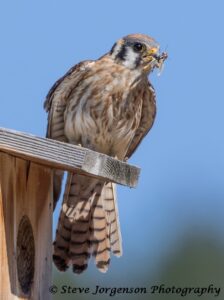 You can help support our work by sponsoring a Kestrel Nesting Box and learn all about these birds and their nesting habits. Throughout the season, you’ll be assigned a box and follow its progress. We will periodically provide information on nesting activity, hatching, and nestling success. We always have lots of fun stories to share along with photos, when possible.
