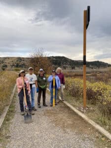 Opportunities to volunteer for the wetland arise all year long, but the main season for outdoor work onsite ends in the fall. The 2023 volunteer season at the IAWP wrapped up with the Busy Beaver Rendezvous toward the end of October. Fifteen volunteers enjoyed the mild weather as they worked on clearing the culvert, installing bat boxes, and winterizing the wetland infrastructure. The group also enjoyed the birds who remained at the wetland, including magpies, mallards, and vocal kingfishers hunting near the trail. The crew, consisting of seasoned Busy Beavers, new volunteers, and SAS board members ended the day with a pizza party in the pavilion.
