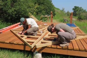 Weed pulls, cleanups, and building work days – Busy Beavers built a pavilion, set up two new bat boxes and one new wood duck box, and repaired the berm boardwalk.